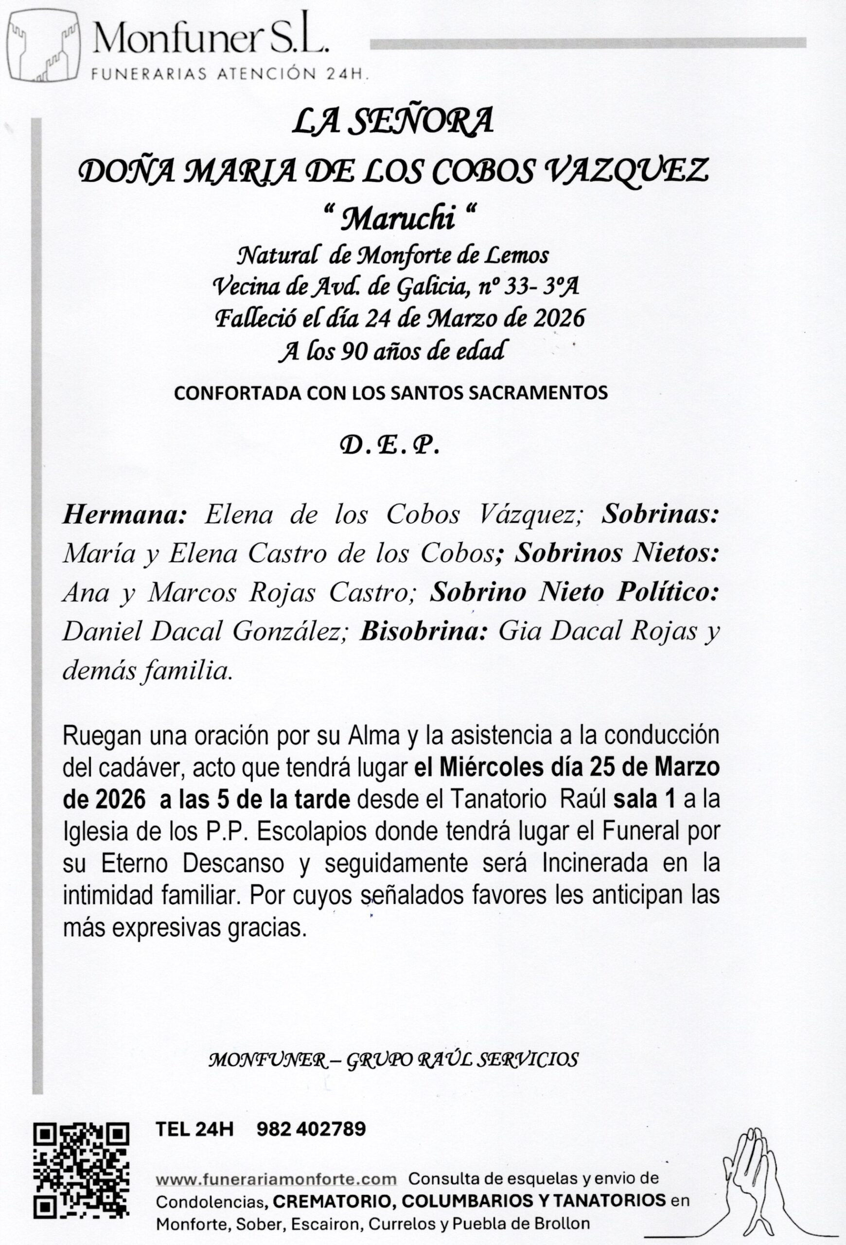 LA SEÑORA DOÑA Mª DE LOS COBOS VÁZQUEZ