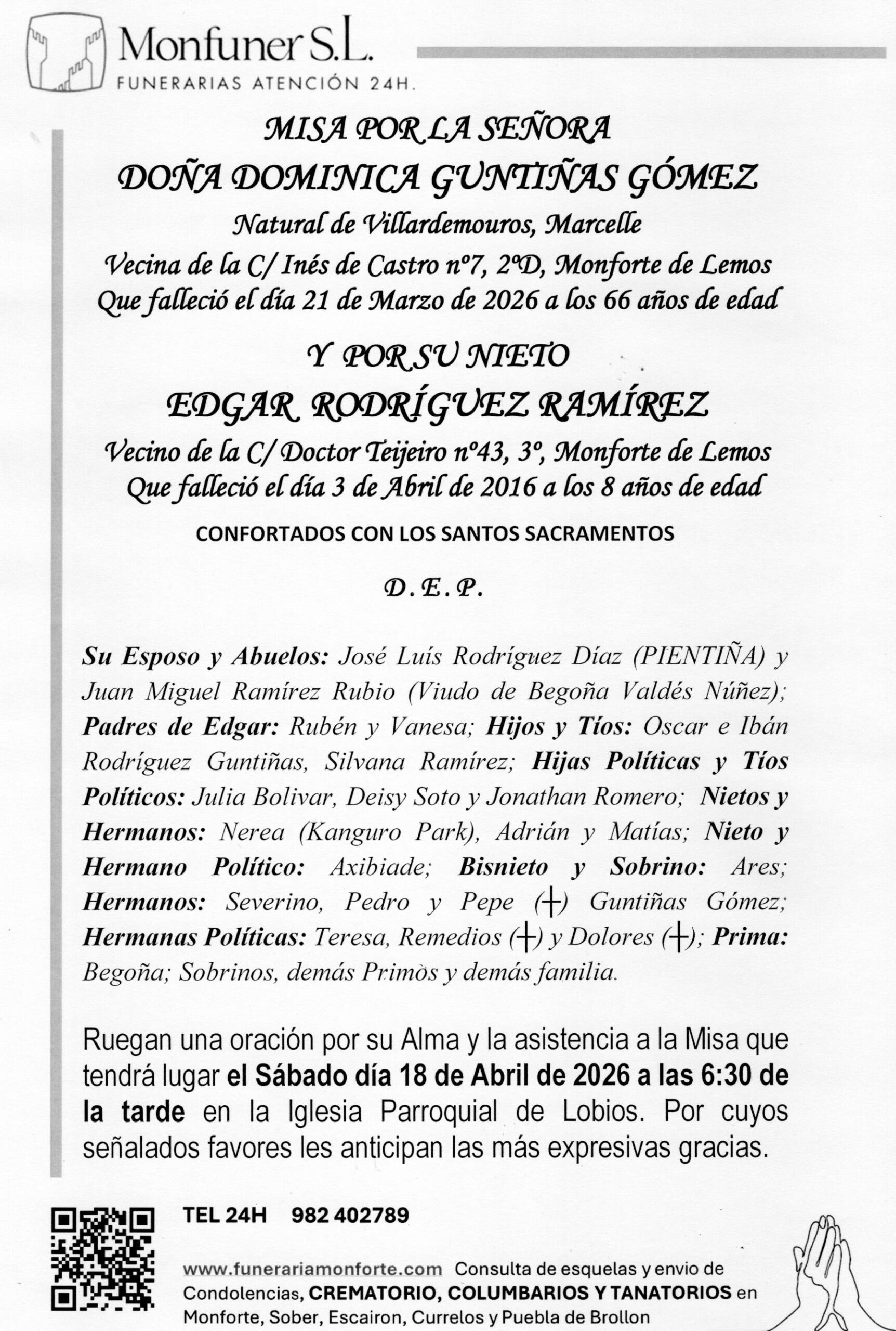 MISA POR DOMINICA GUNTIÑAS Y EDGAR RODRÍGUEZ