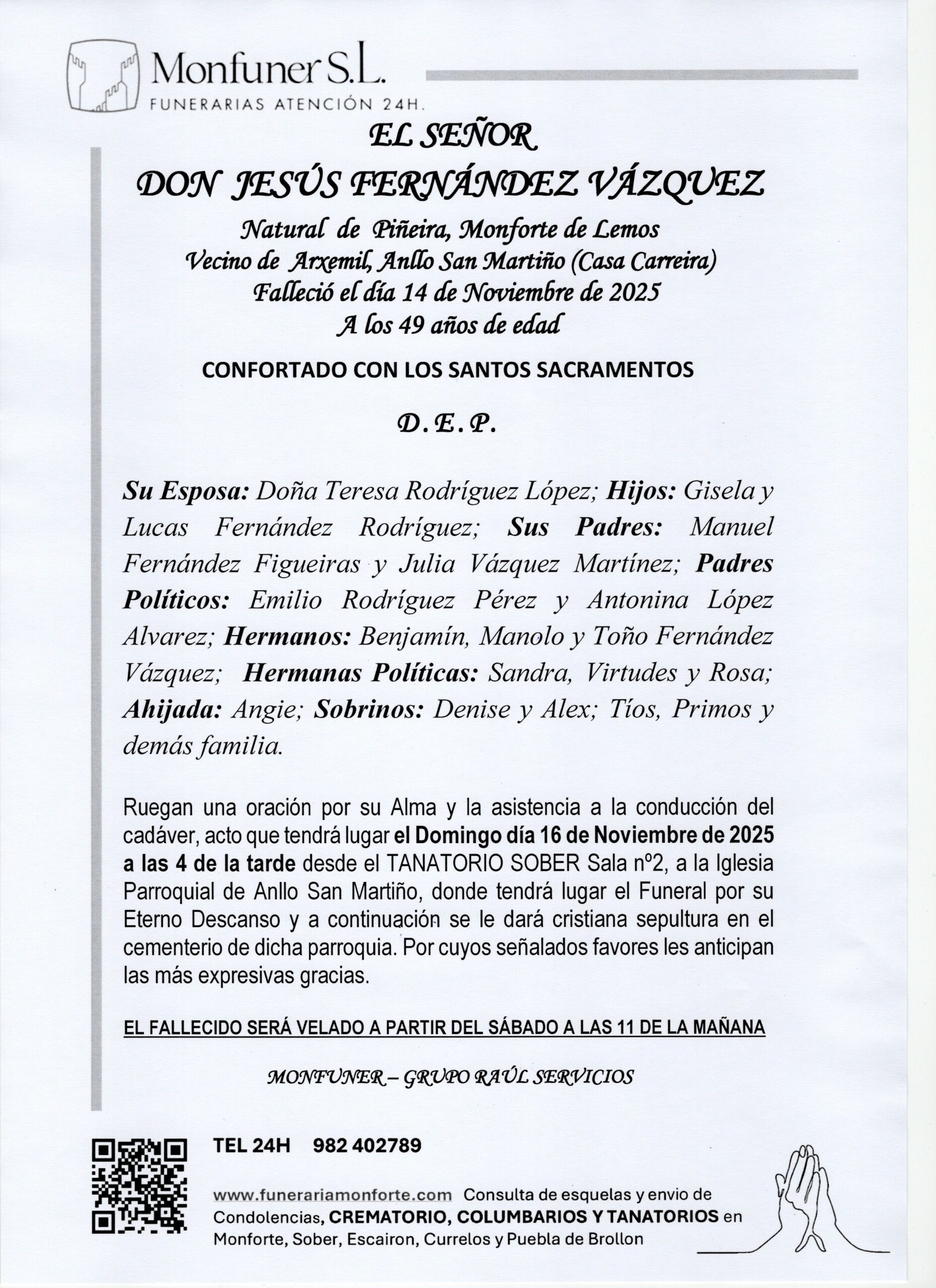 FUNERARIAS Y TANATORIOS EN MONFORTE, SOBER, ESCAIRON Y PUEBLA DE BROLLON