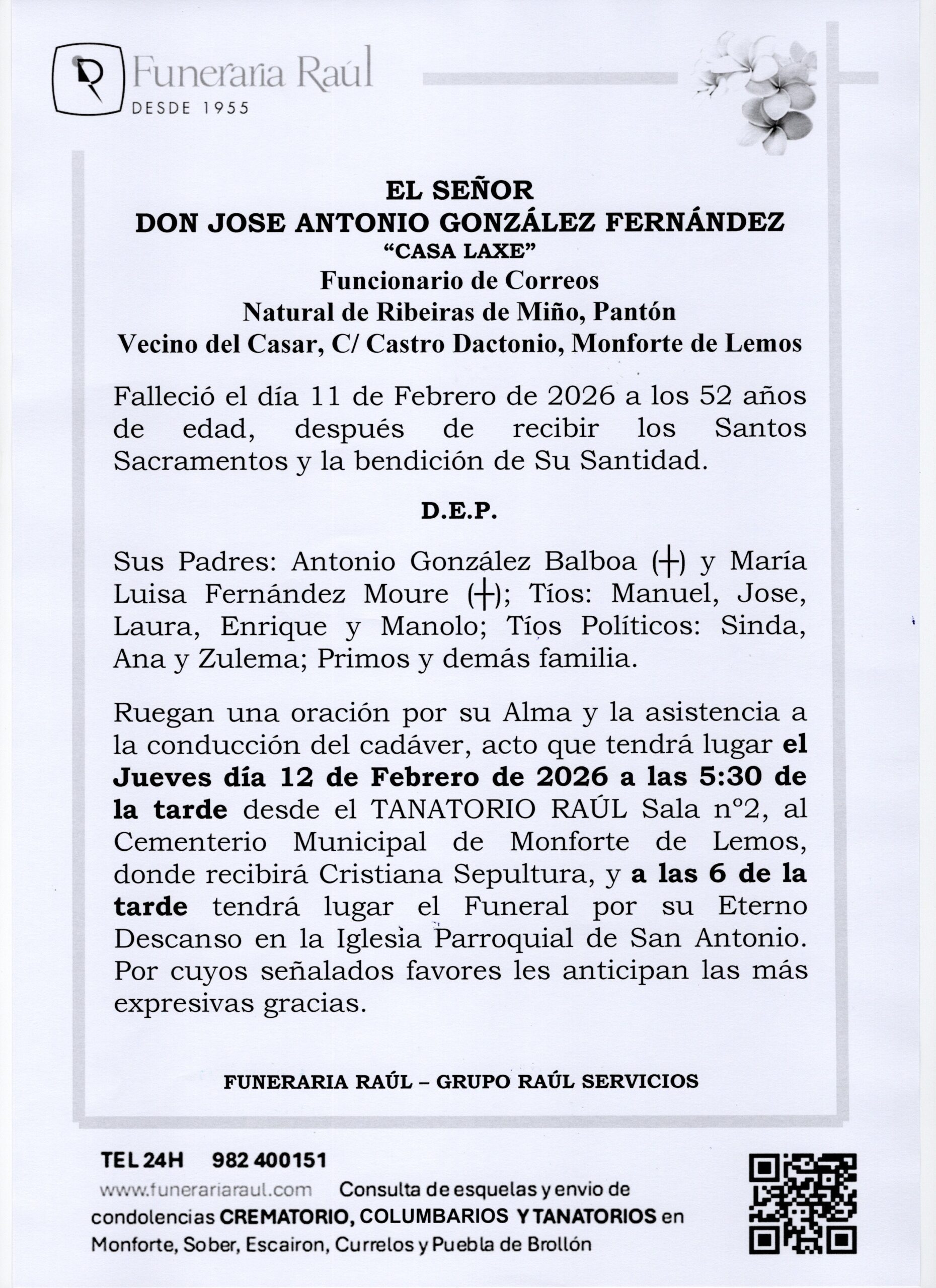 FUNERARIAS Y TANATORIOS EN MONFORTE, SOBER, ESCAIRON Y PUEBLA DE BROLLON