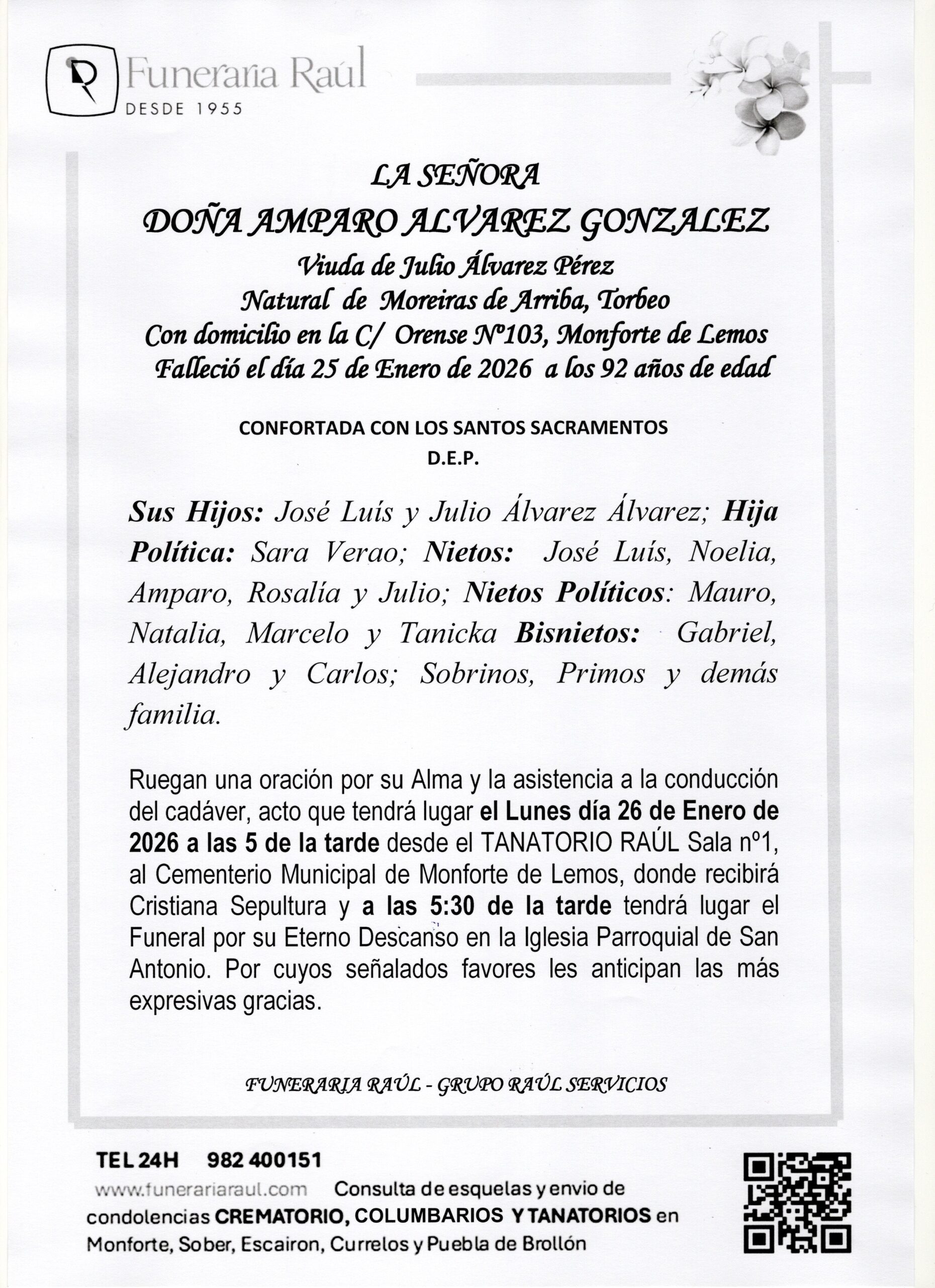 FUNERARIAS Y TANATORIOS EN MONFORTE, SOBER, ESCAIRON Y PUEBLA DE BROLLON