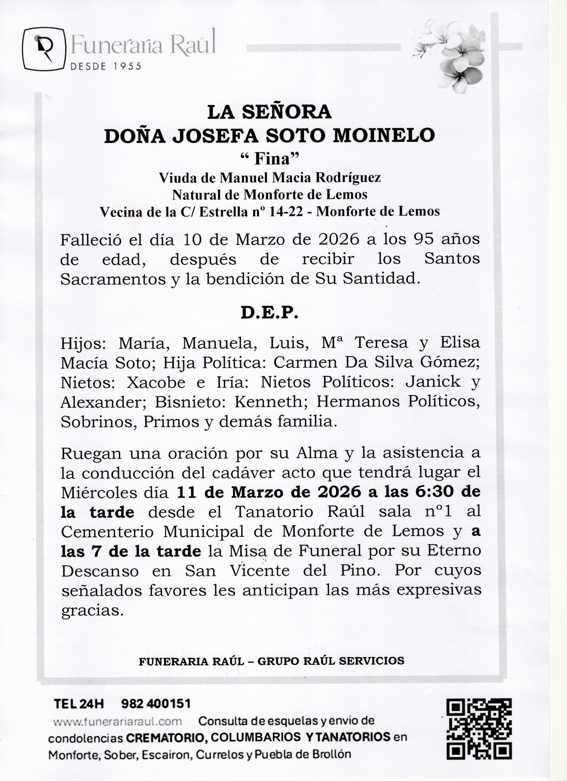 FUNERARIAS Y TANATORIOS EN MONFORTE, SOBER, ESCAIRON Y PUEBLA DE BROLLON