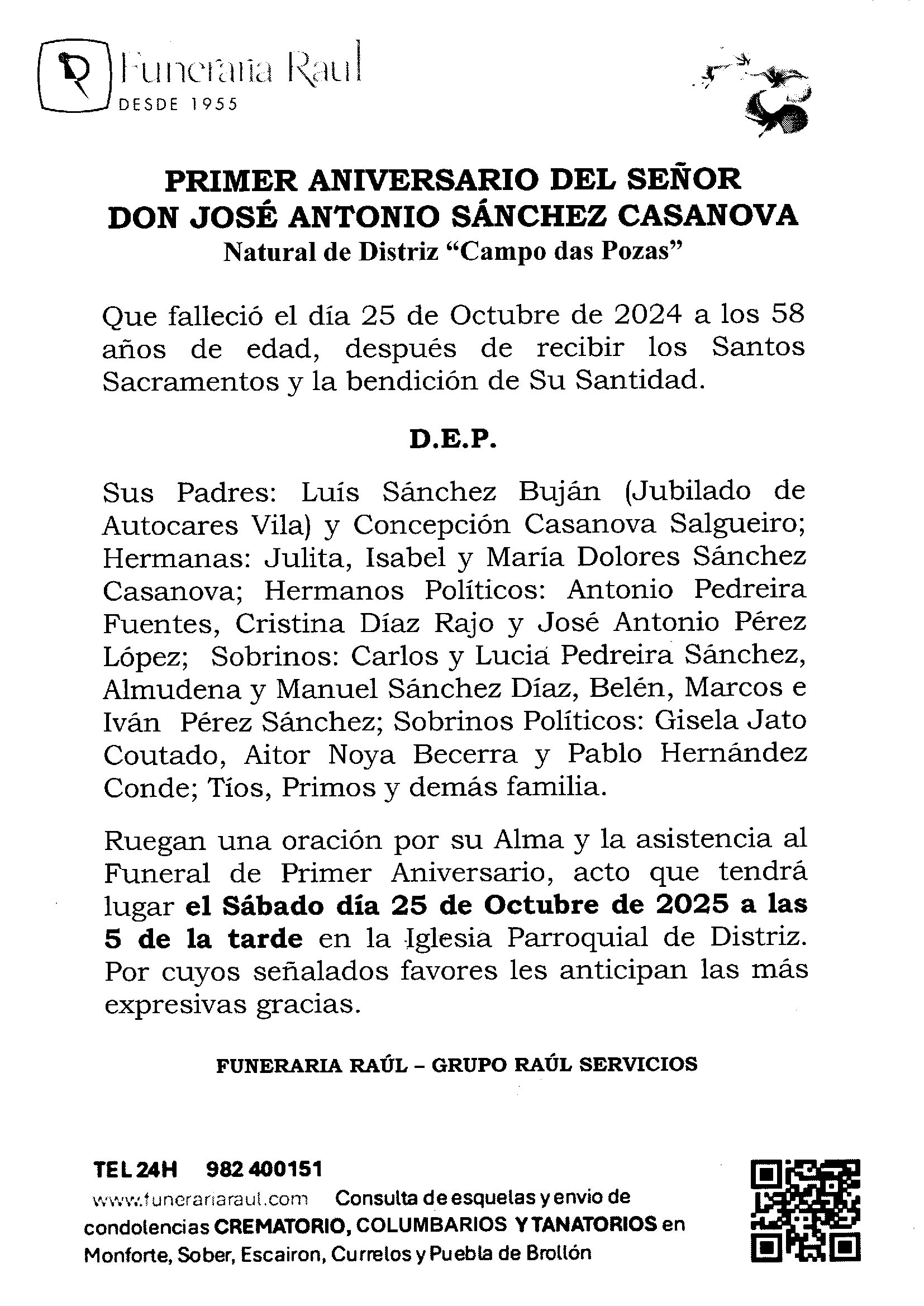 PRIMER ANIVERSARIO DE DON JOSE ANTONIO SANCHEZ CASANOVA